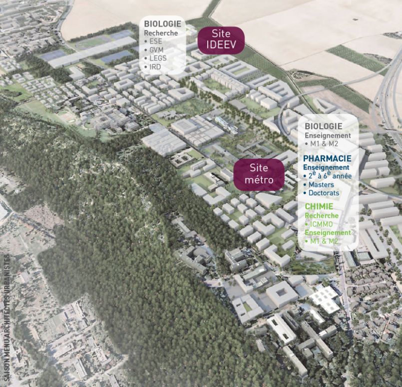 L’opération globale est réalisée dans le cadre d’un Partenariat Public Privé (PPP). Cette opération prévoit, à l’horizon 2018-2019, l’installation de l’enseignement de la biologie, de la chimie, de l’Institut de Chimie Moléculaire et des Matériaux d’Orsay, et de la plus grande partie de la faculté de Pharmacie, soit environ 4 500 étudiants et 1 250 personnels.